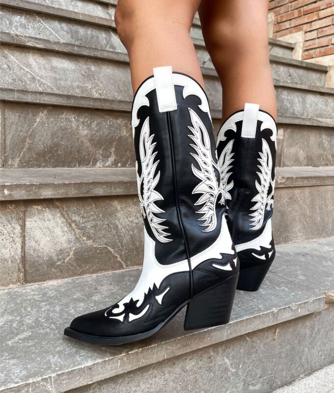 Botas cowboy negras detalles beige