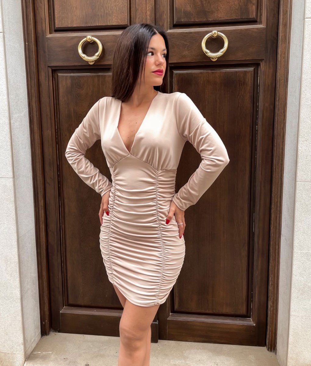 Vestido frunce manga larga